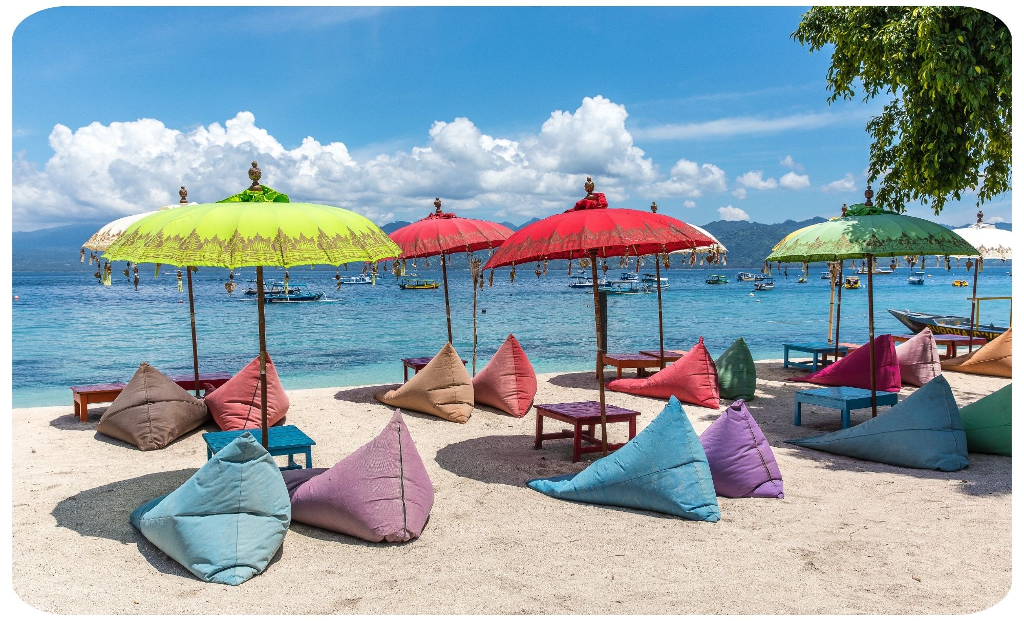 Gili Islands (Gili Trawangan, Gili Air, Gili Meno): White sandy beaches, crystal-clear waters, and world-class snorkeling spots.